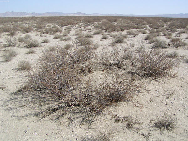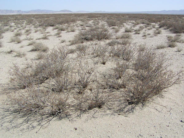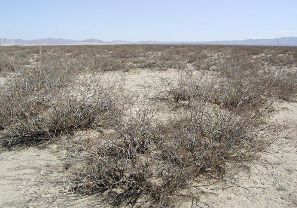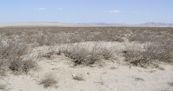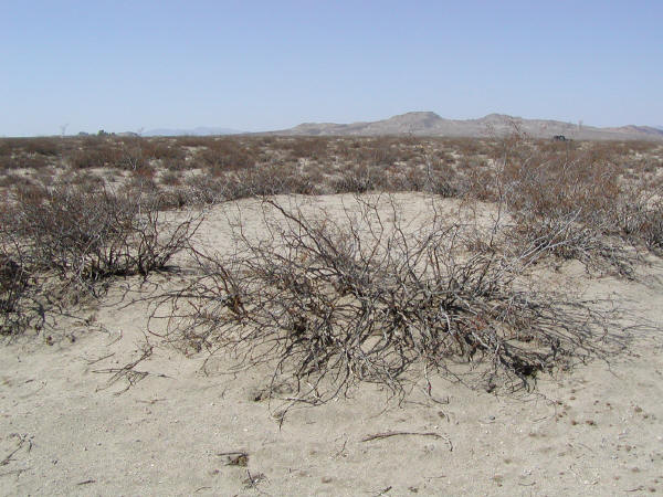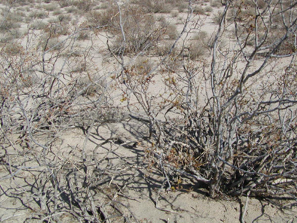 | Because these stands of Creosote offer some shade and cover there are many critters making their homes in the protected area under them. |