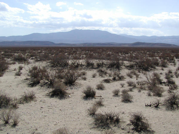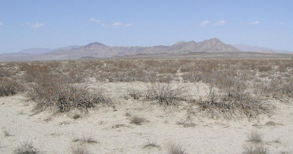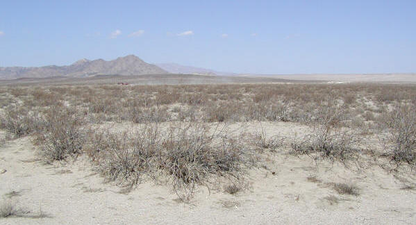 | These Creosote bushes, in a nearby valley not far from the Creosote Rings, have been getting more moisture. It is visible in all the surrounding vegetation. There are no Creosote bush rings in this area. |