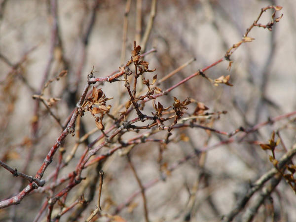| No green leaves but the stems feel healthy. This entire area is very dry after the hot dry summer. |