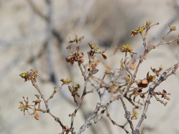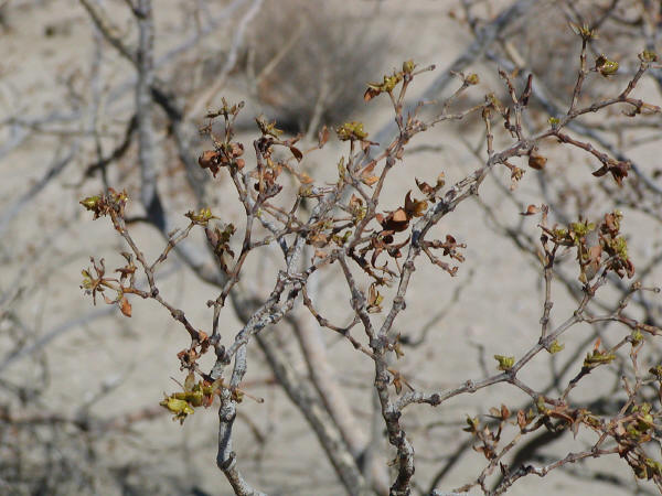 | Looking closely you can see there are some green leaves. These bushes are not drooped and the centers are not dying out. I wonder if the occurrence of the Creosote rings are in direct relationship to the lack of moisture in the area or the elements in the soil or a combination of the two. |