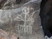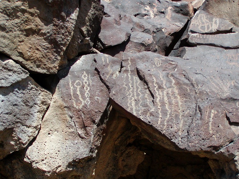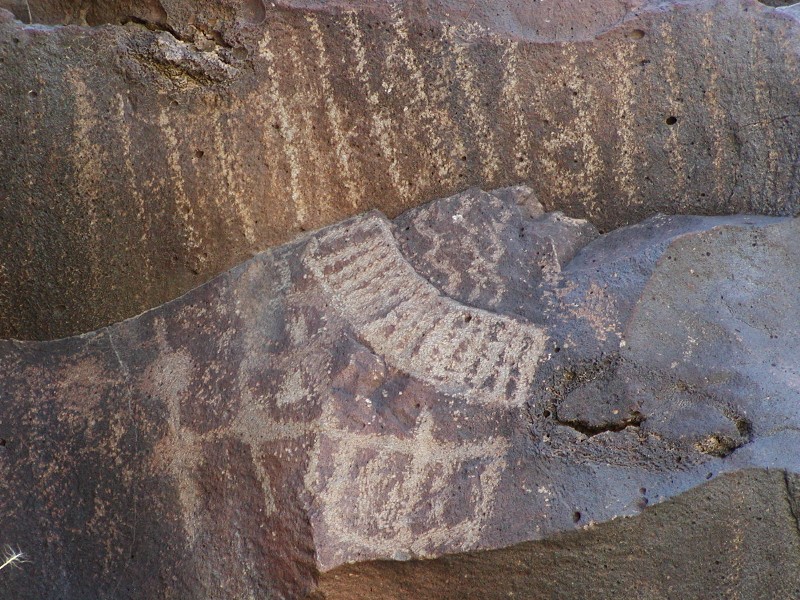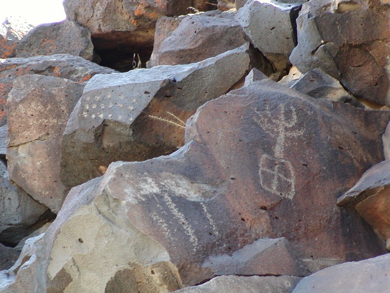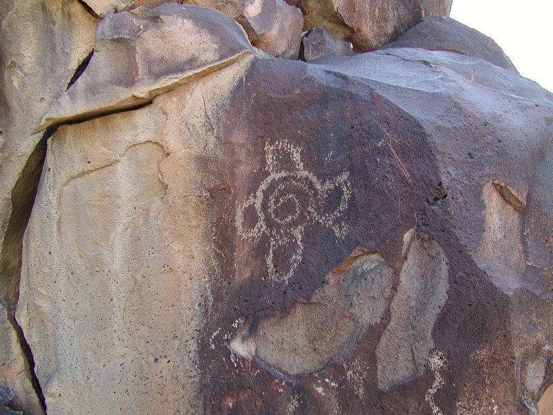 Petroglyphs are found here due to the presence of lava rock and minerals suitable for "rock art" activities. |
